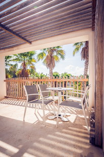 Diese Zimmer mit 1 Schlafzimmer verfügen über ein Wohnzimmer mit einem Doppelschlafsofa, ein Badezimmer und eine möblierte Terrasse oder einen Balkon. Sie beinhalten Halbpension oder nur Frühstück. Die maximale Kapazität beträgt 2 Erwachsene und 2 Kinder oder 3 Erwachsene. Die Garden Junior Suiten bieten einen herrlichen Blick auf die weitläufigen Gärten des Komplexes.