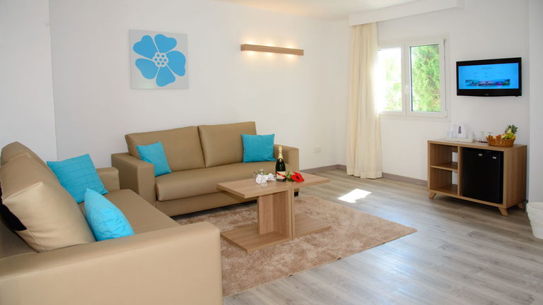 Les Deluxe studios comprennent deux chambres, un salon avec un canapé-lit, deux salles de bain complètes et une terrasse ou un balcon meublé avec vue sur les magnifiques jardins du complexe. Ils permettent une capacité de 4 adultes et 2 enfants.
