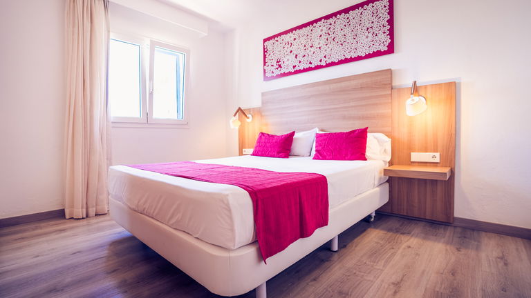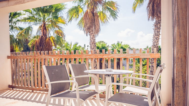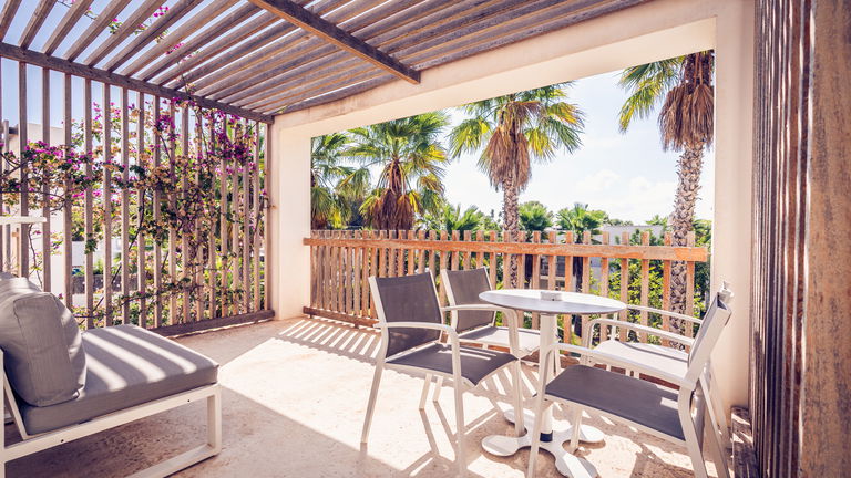 Ces chambres 1 chambre disposent d'un salon avec un canapé-lit double, une salle de bains complète et une terrasse ou un balcon meublés. Ils comprennent en demi-pension ou avec petit-déjeuner uniquement. Sa capacité maximale est de 2 adultes et 2 enfants ou 3 adultes. Les suites junior avec jardin offrent une vue magnifique sur les vastes jardins du complexe.